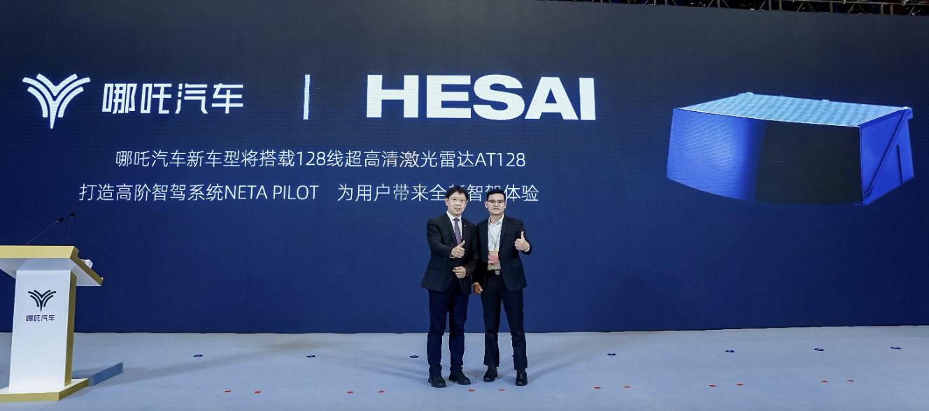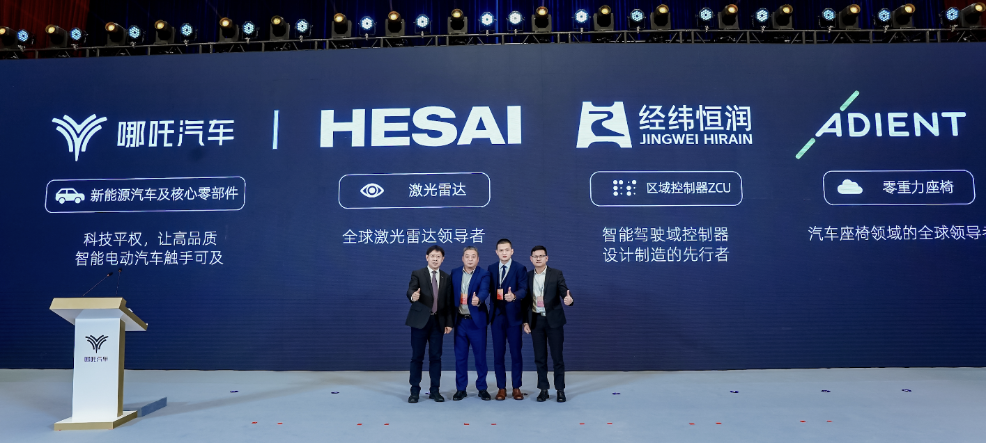 【图1:哪吒汽车携手禾赛、经纬恒润、安道拓,联合技术发布】