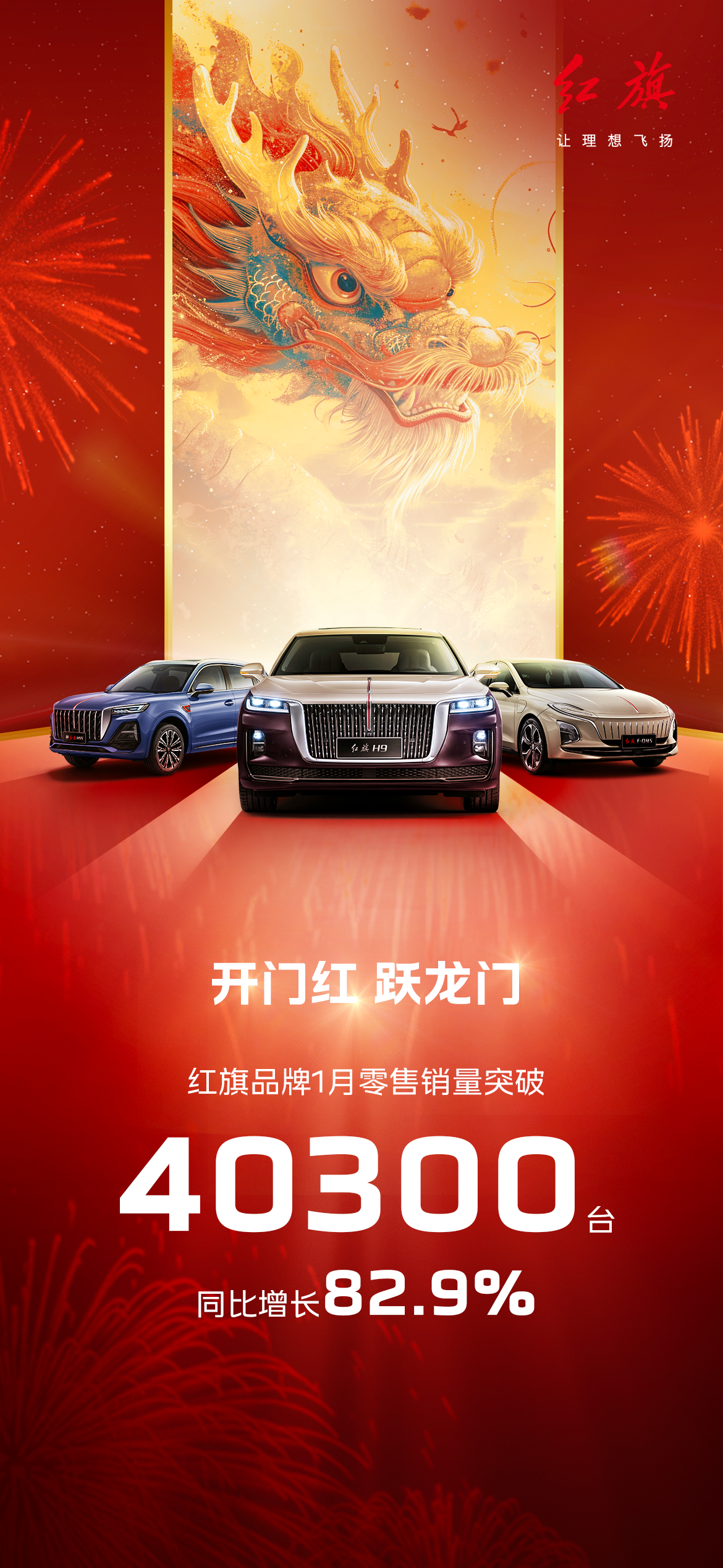 开门红 跃龙门 一汽红旗1月销量突破40300台 同比增长82.9%
