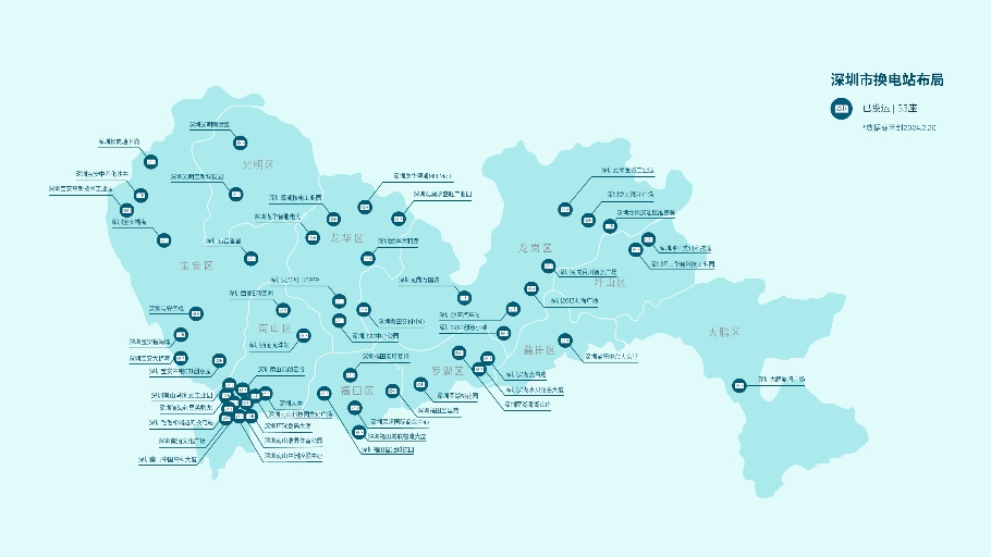 截至2024年2月20日,蔚来在深圳及粤东已布局97座换电站、154座充电站,并接入超6万根第三方充电桩。在全国布局2,375座换电站、充电站3709座,接入第三方充电桩超100万根。