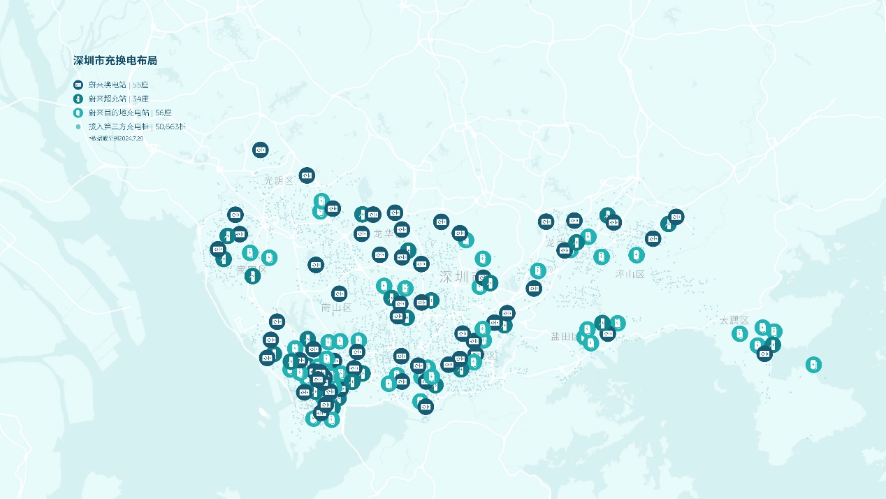 目前,深圳市的蔚来换电站总数为55座,超充站34座,目的地充电站56座,“电区房”覆盖率已超过95%,意味着超95%的深圳车主家或公司3公里附近有至少1座换电站。
