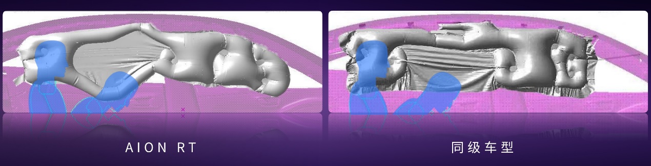 AION RT是全球安全标杆,按照C-NCAP 2024五星标准,和中保研3G标准设计,并满足全球其他地区的安全标准。AION RT采用枪击不起火的埃安弹匣电池2.0技术,80万台车行驶480亿公里0自燃。车身采用高强度笼式设计,高强钢铝合金比例74%,热成型钢比例27%,远超同级。车内配备7个安全气囊,后排侧气帘还增加V型腔体设计,前排配备中央气囊,有效保护车内成员。